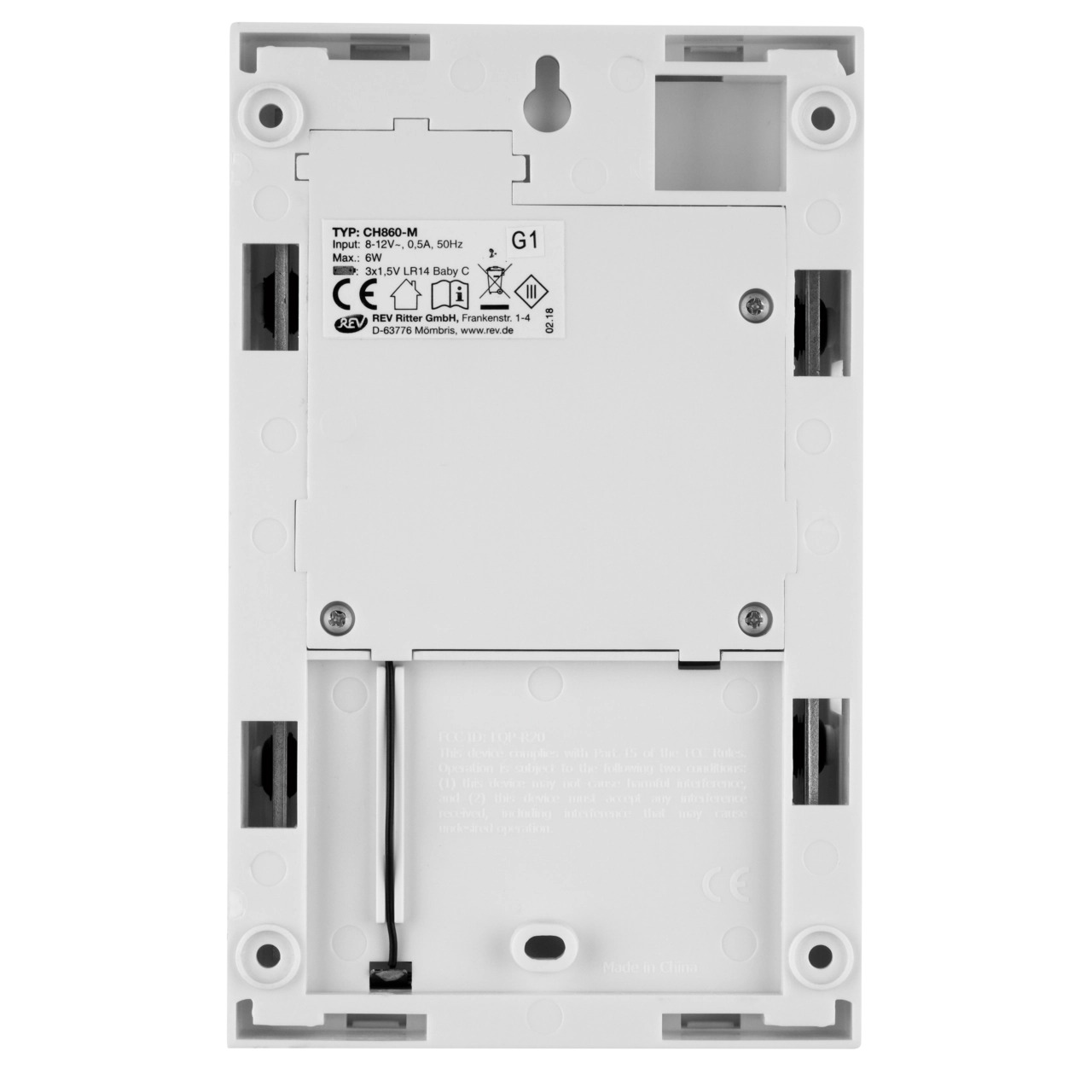 • Batterie Gong: 3 x 1,5 V LR14 Baby C (nicht im Lieferumfang enthalten)