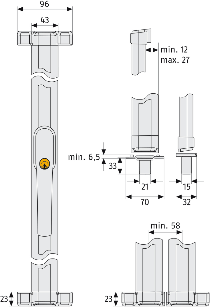• Basisschloss-Paket (ohne Stangen) für 2-Punkt-Verriegelung
