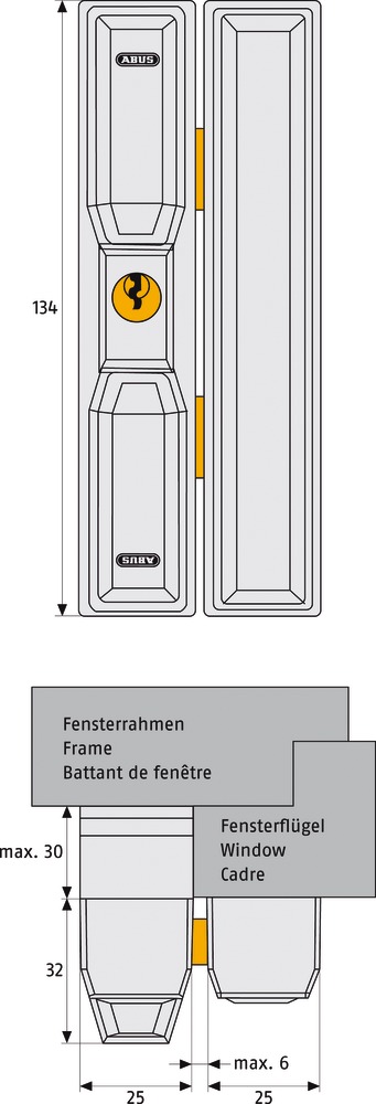 Details zu "ABUS Fenster-Zusatzschloss Nr. FTS88 B VDS und nach DIN 18 104-1 + SKG** / Farbe: braun"