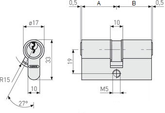Bei asymetrischen Profilzylindern wird zwischen "Länge innen" und "Länge Außen" unterschieden. Sie können sich einfach an der Risszeichnung (Maß A und B) orientieren, die Teil der Bilderstrecke dieses Profilzylinders ist.