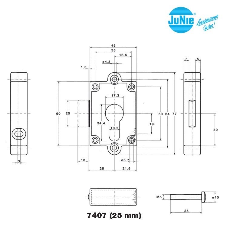 • JuNie aufliegendes Riegelschloss/Möbelschloss Nr. 7407