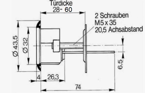 • mit M5 x 35 mm Gewindeschrauben: passend für Türstärke von 28- 60 mm