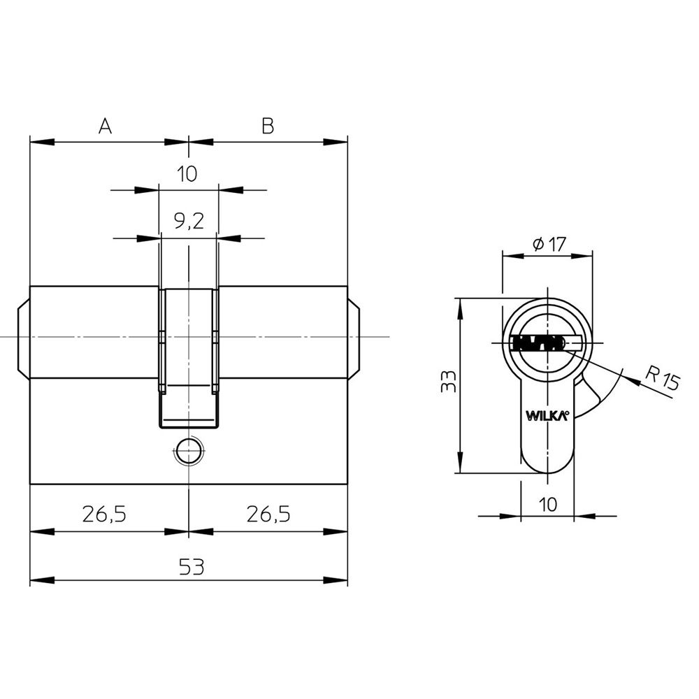 Bei asymmetrischen Zylindern merken Sie sich bitte die Außenseite des Zylinders, damit der mögliche Bohr- und Ziehschutz auf der richtigen Zylinderseite eingebaut wird. Symmetrische Zylinder (Maß A = B) können in beide Richtungen eingebaut werden.
