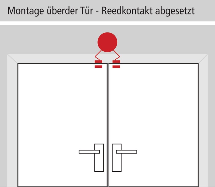• arbeitet mittels Reedkontakt u. wird oberhalb der Tür oder auf Türblatt installiert