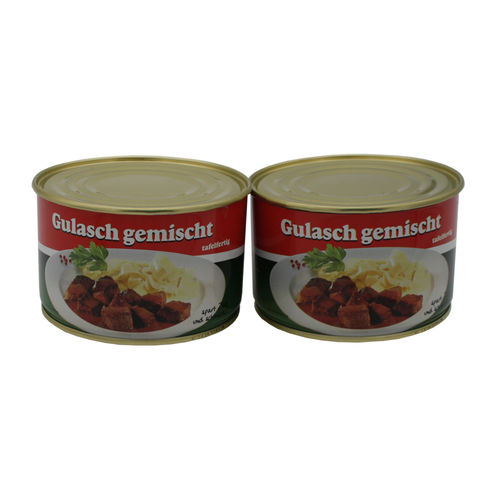 Dosen-Konserven-Safe-Set (2-er Set) Gulasch gemischt / Abm.: B100 x H65 mm