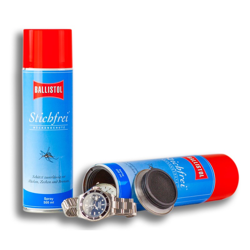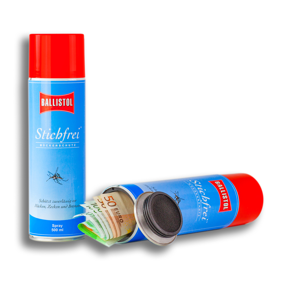 • Dosensafe getarnt als "Ballistol Stichfrei" Mückenabwehrspray