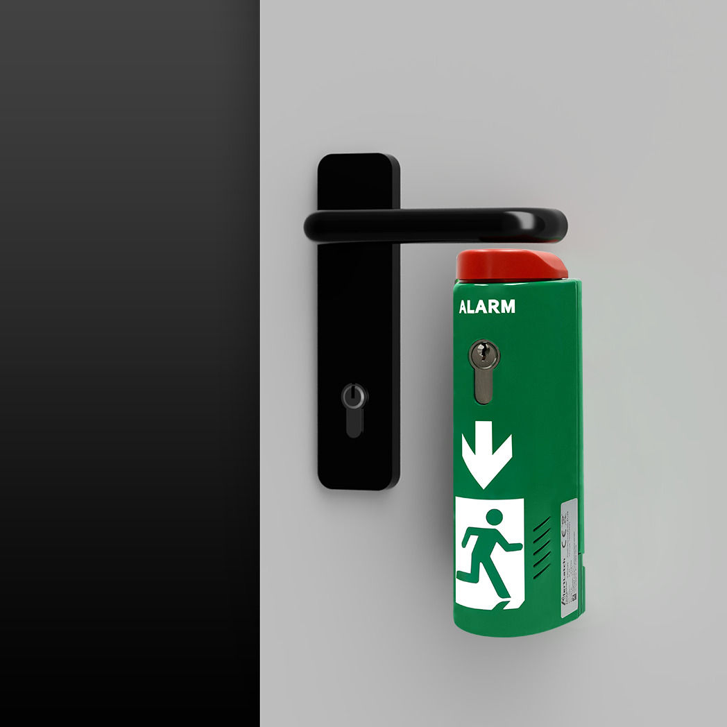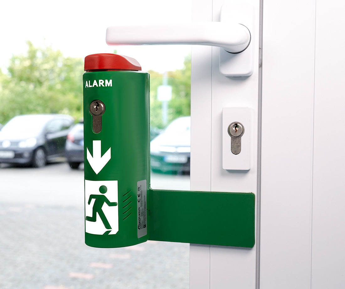 • sichert den Notausgang und ermöglicht dessen Öffnung mit einem einzigen Handgriff