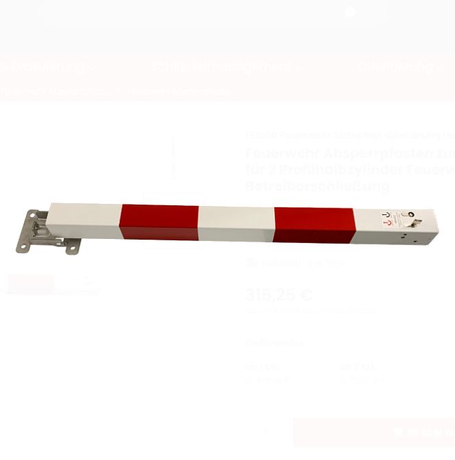 • inklusive: 2 x PZ-Zylinderschrauben (M5), Folienaufkleber "Absperrpfosten", 1 Bodenplatte, 2 x retroreflexierende Reflexfolie