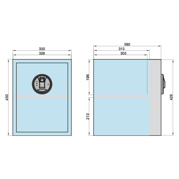 • Abmessung außen: (B)330 x (H)430 x (T)380 mm