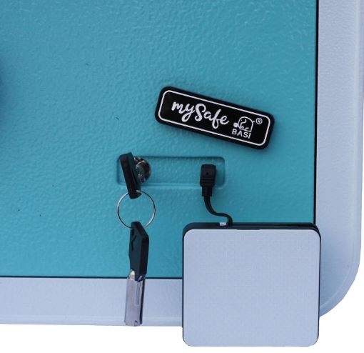 Details zu "Elektronik-Möbeltresor "mysafe" Farbe: Blau-Weiß Elektronikschloss mit Zahlencode"