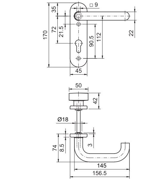 Details zu "FH-Verdeckschild-Wechselkurzbeschlag / 9 mm / Nr.: 306200 / EDELSTAHL / festdrehbar / 72 mm"