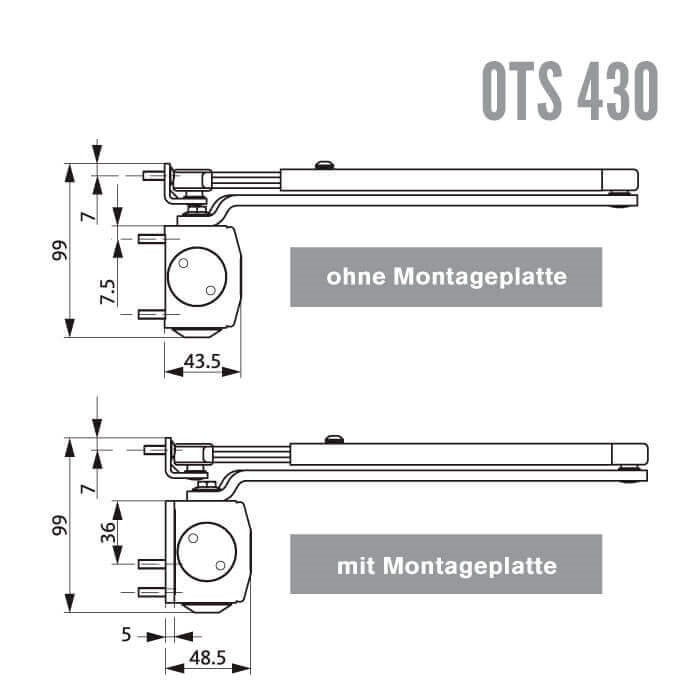 Details zu "G-U-Türschließer mit Gestänge Nr. OTS 430 silber/ Größe EN 2-5 / silberf./ 1250mm max. Flügelbreite"