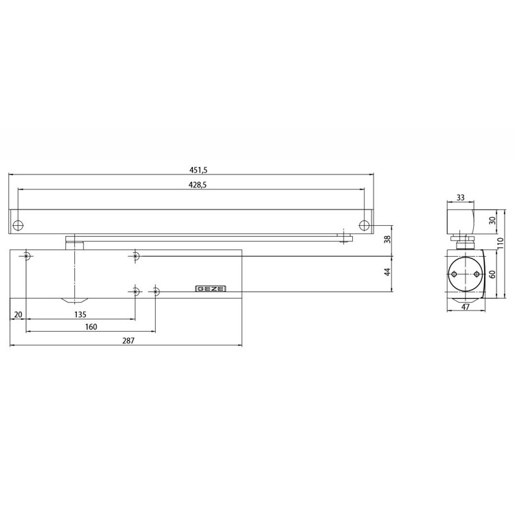 • Schließgeschwindigkeit, Endschlag und Öffnungsdämpfung einstellbar