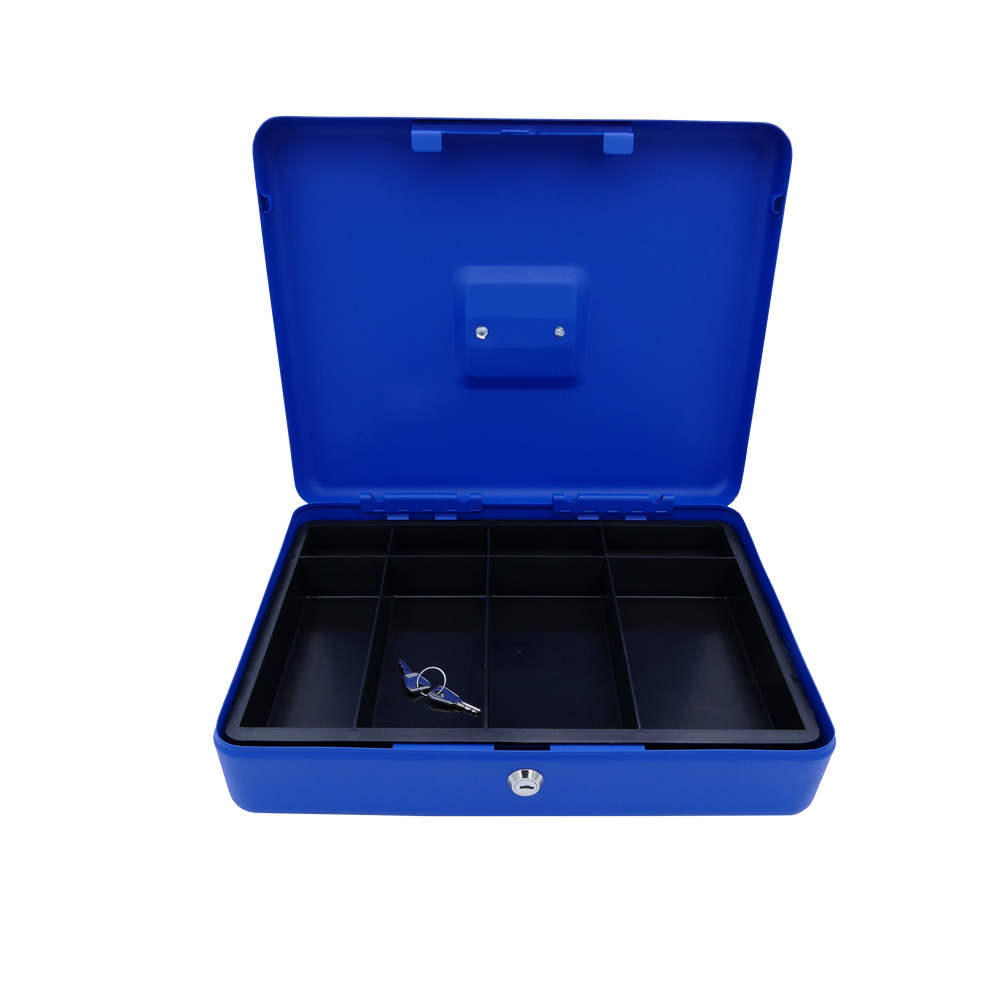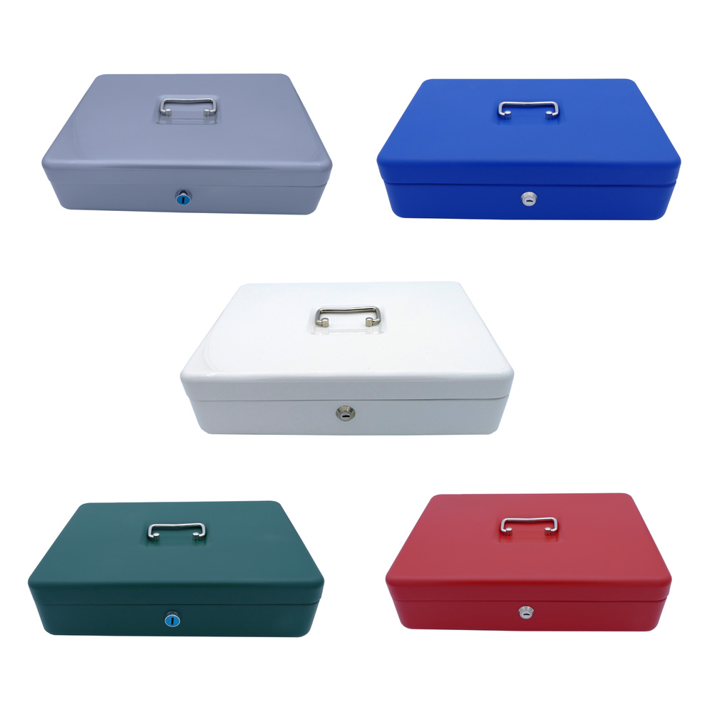 • beschichtete Stahlgeldkassette mit Hebelschloss und 2 Schlüssel