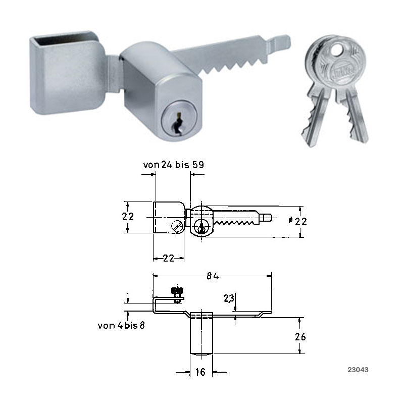 • Stiftzylinder mit je mit je 2 Schlüssel