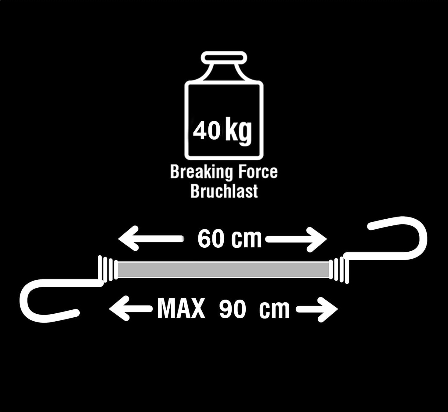 Details zu "Gummi-Spannseile mit 2 Haken / Farbe: rot 1 Set = 2 Stück (60cm Länge, ausziehbar auf 90cm)"