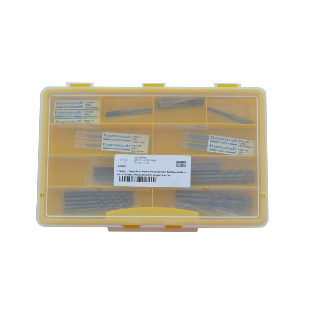Die 12-teilige Sortimentsbox ist ausgestattet mit folgenden Hartmetall-Fräsern und Metallbohrern (HSS-E):