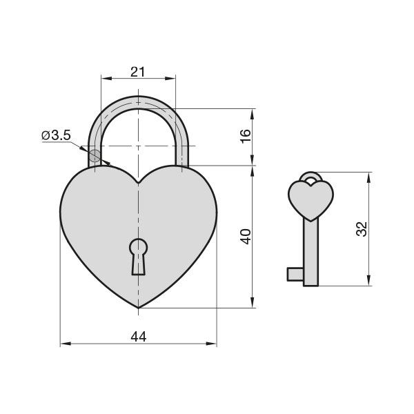 Details zu "Herz-Vorhangschloss / inkl. 1 Schlüssel gravurfähig / silberfarbig"