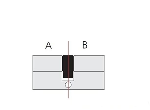Bei asymetrischen Profilzylindern wird zwischen "Länge innen" und "Länge Außen" unterschieden. Sie können sich einfach an der Risszeichnung (Maß A und B) orientieren, die Teil der Bilderstrecke dieses Profilzylinders ist.