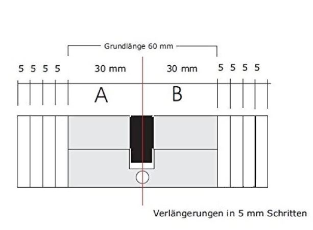 Bei asymetrischen Profilzylindern wird zwischen "Länge innen" und "Länge Außen" unterschieden. Sie können sich einfach an der Risszeichnung (Maß A und B) orientieren, die Teil der Bilderstrecke dieses Profilzylinders ist.