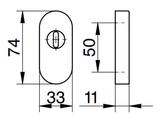 • F1-eloxierte PZ-Schieberosette mit Kernziehschutz in ovaler Ausführung