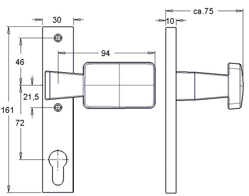 Details zu "Knopf-Kurzschild passend für Schlosskästen fest / 72 mm / Lochabstand = 67 mm / F1"