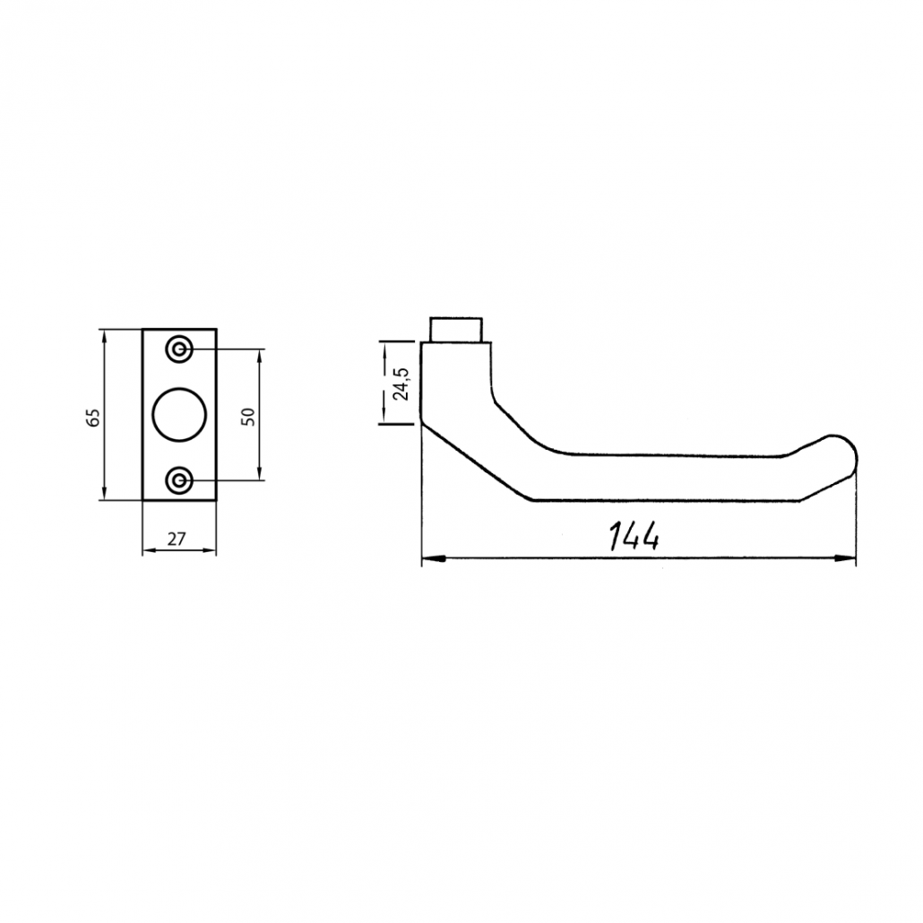 Details zu "Metalltürdrückerlochteil 8 mm / F1-elox. festdrehbar auf eckiger Guss-Rosette / LA = 50 mm"