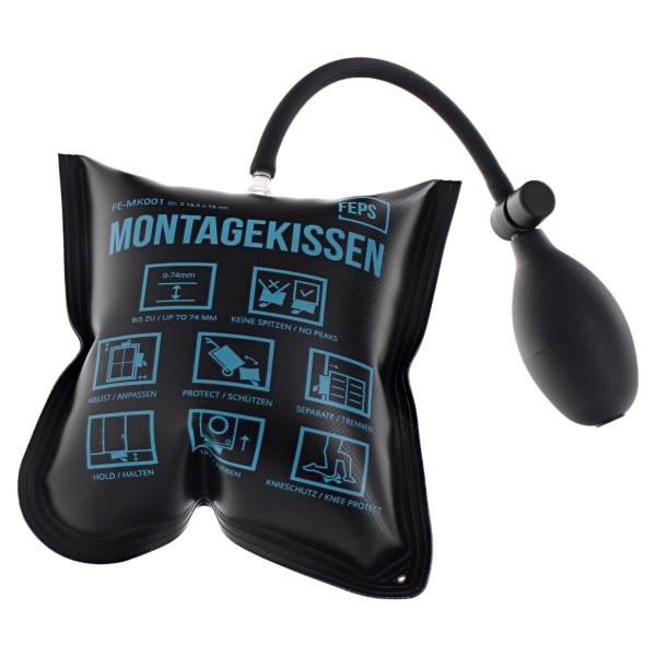 Montage-Luftkissen mit Blasebalg (Handpumpe) Montagekissen passend für Spaltbreite bis 74 mm