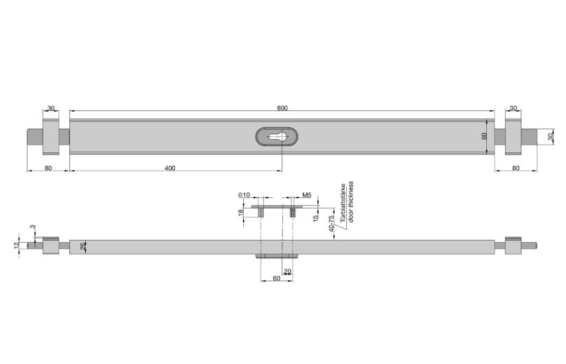 • Riegelausschluss: beidseitig 80 mm mit einer Schlüsseldrehung