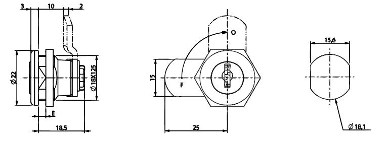 • Gesamthöhe (Oberkante Zylinder bis Unterkante Hebel): 15 bzw. 18,5 mm