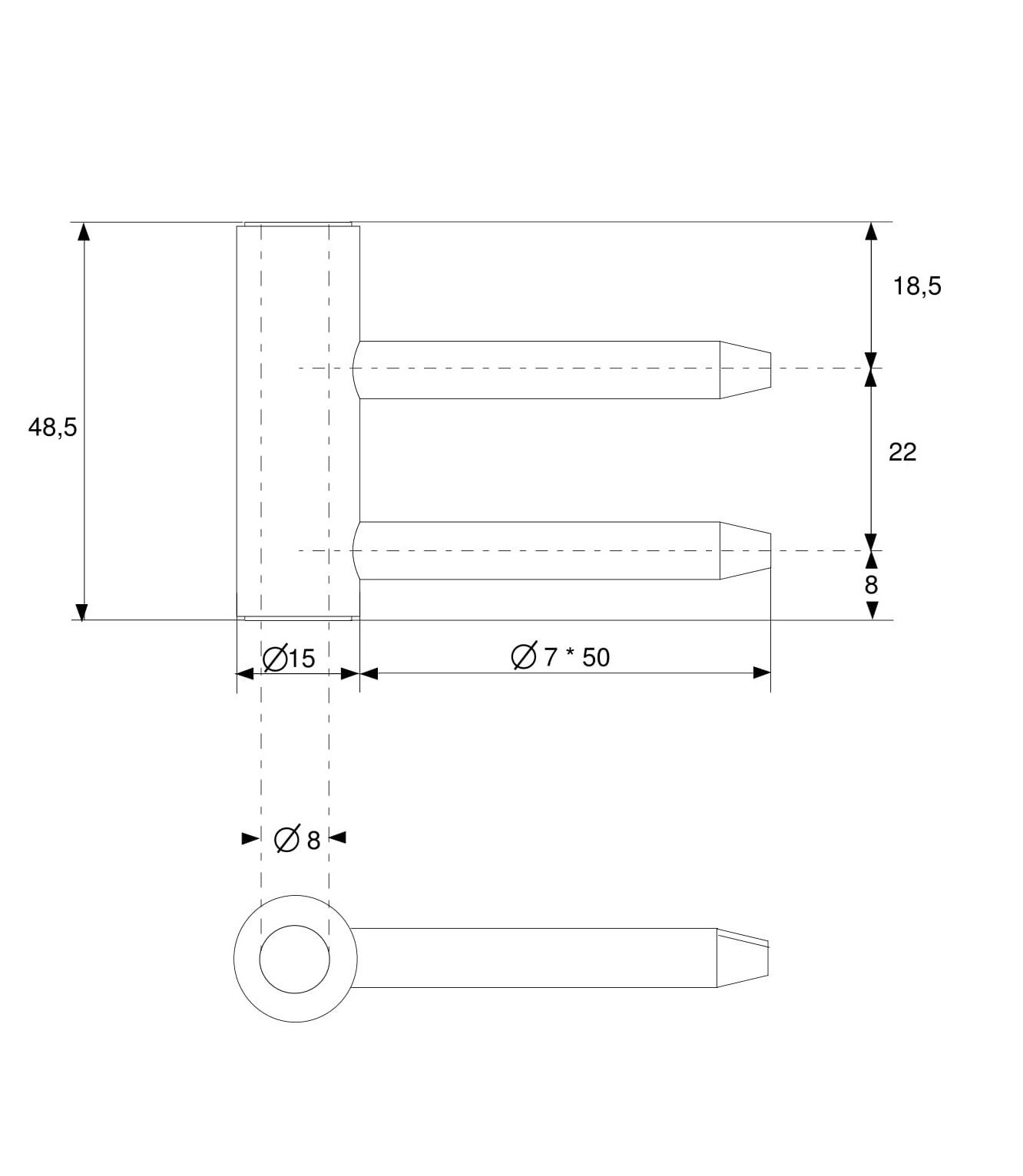 Rahmenteil für 3-tlg. 49 mm Bänder an Glastüren bei Holzzargen / Stahl vernickelt / Höhe: 48,5 mm