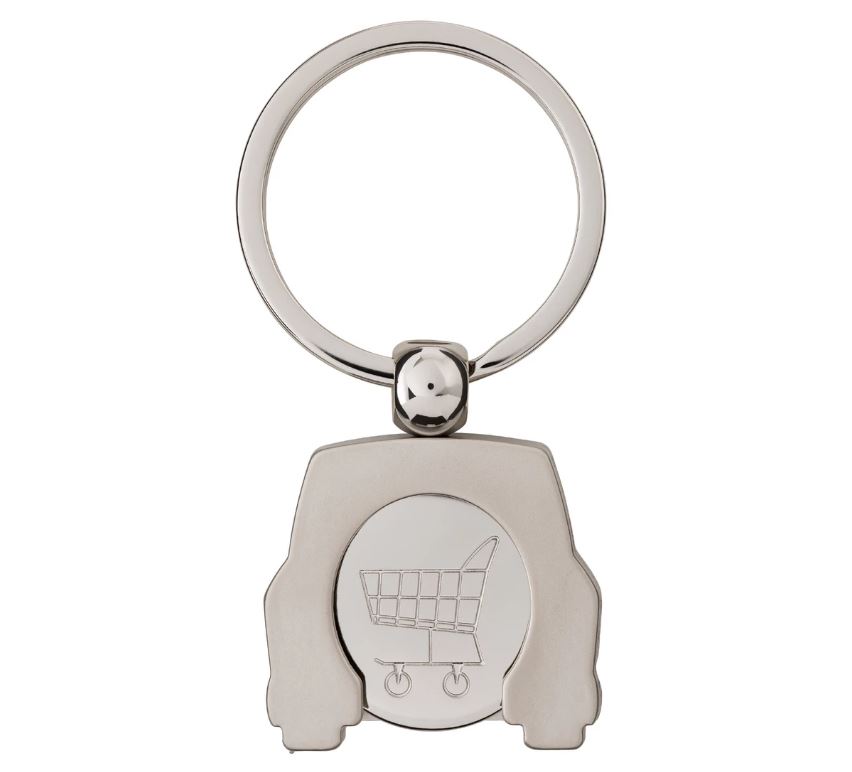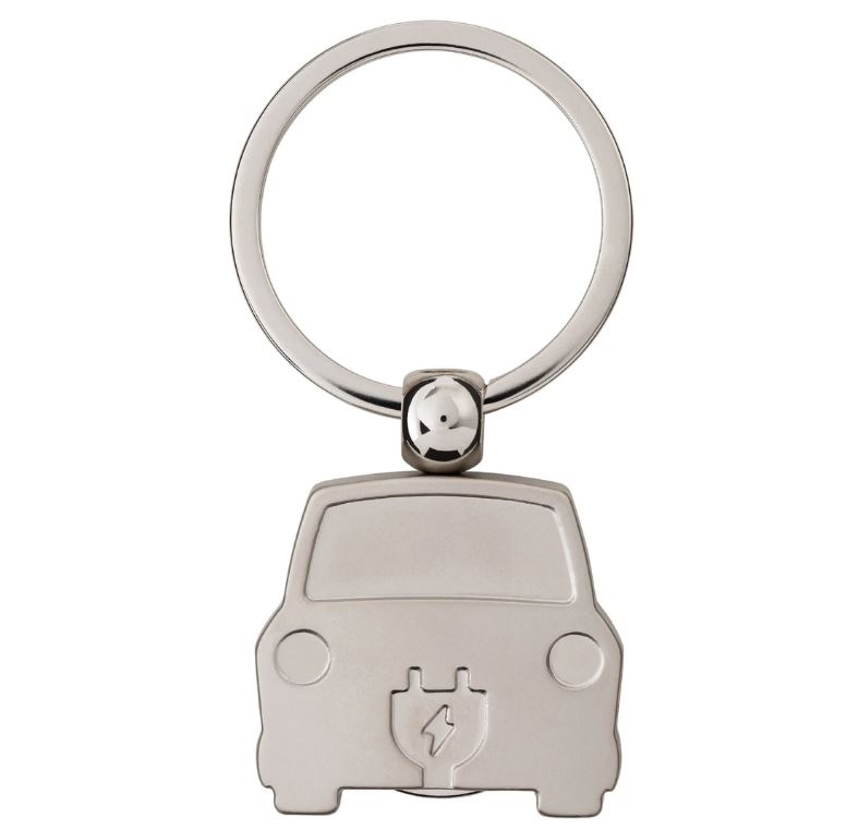 Details zu "Schlüsselanhänger "RE98-Drive In" / mattsilber im E-Auto-Design mit Einkaufswagenchip"