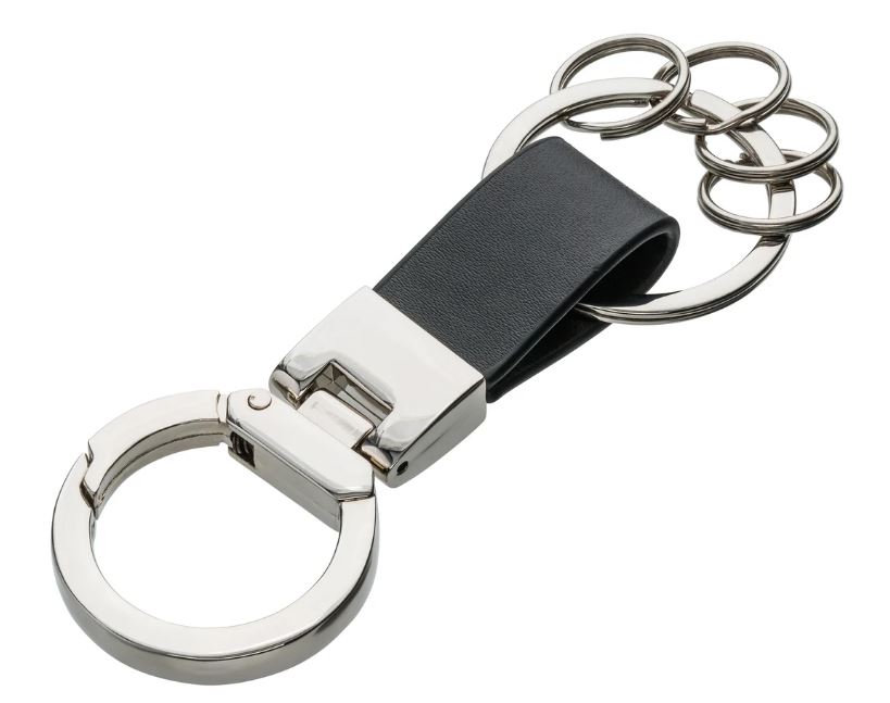 Details zu "Schlüsselanhänger mit 4 abnehmbaren Ringen Art.-Nr.: 10346 / Metall / Leder / schwarz"