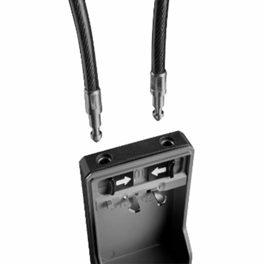 • im Innenbereich befindet sich ein Hebel, mit dem man den Kabel (Bügel) entnehmen kann