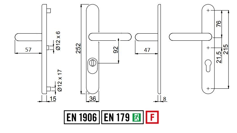Details zu "Schmalrahmensicherheitsgarnitur beidseitig Drücker F1 / 9 mm / 92 mm / 8-15 mm Zylindervorstand / ES1"