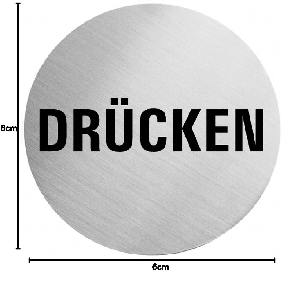 Details zu "Selbstklebende Türschilder "Drücken" Art.-Nr.: 7047 EDELSTAHL, 60 mm Durchmesser"
