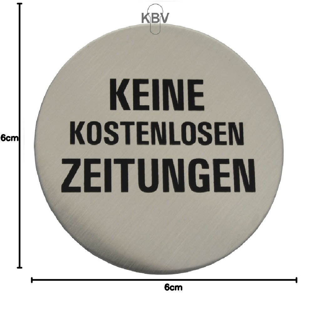 Selbstklebende Türschilder "Keine Zeitungen" Art.-Nr.: 7108 EDELSTAHL, 60 mm Durchmesser