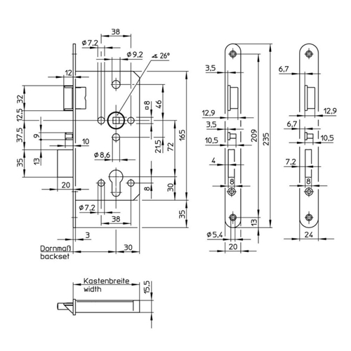 Details zu "Selbstverr. Antipanikschloss Nr. 5495-DRS / mit Niro-Stulp 20x235 mm rund / 72mm / 80-Dorn / 8 mm"