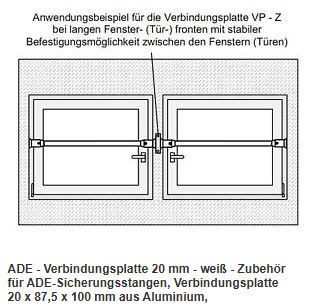 • schafft eine stabile Verbindung zwischen zwei Teleskopstangen, um z.B. ein zweiflügeliges Fenster zu sichern