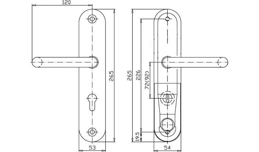 Visierbeschlag beidseitig Drücker / 72 mm SONDERNETTOPREIS