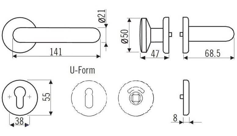 Ztr.-Rosetten-Drückergarnitur / 8 mm BB-gelocht / Nr. 156500-BB / Edelstahl